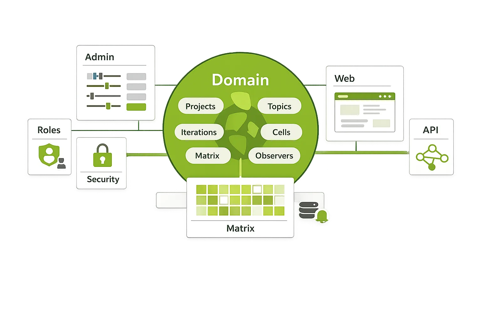Bricksis to aplikacja, która pomaga małym i średnim firmom uporządkować procesy i ograniczyć straty - czasowe, finansowe, organizacyjne i komunikacyjne. System odwzorowuje realne procesy pracy przez własny model domenowy: projekty, iteracje, tematy, komórki, matryce, obserwatorzy i role.